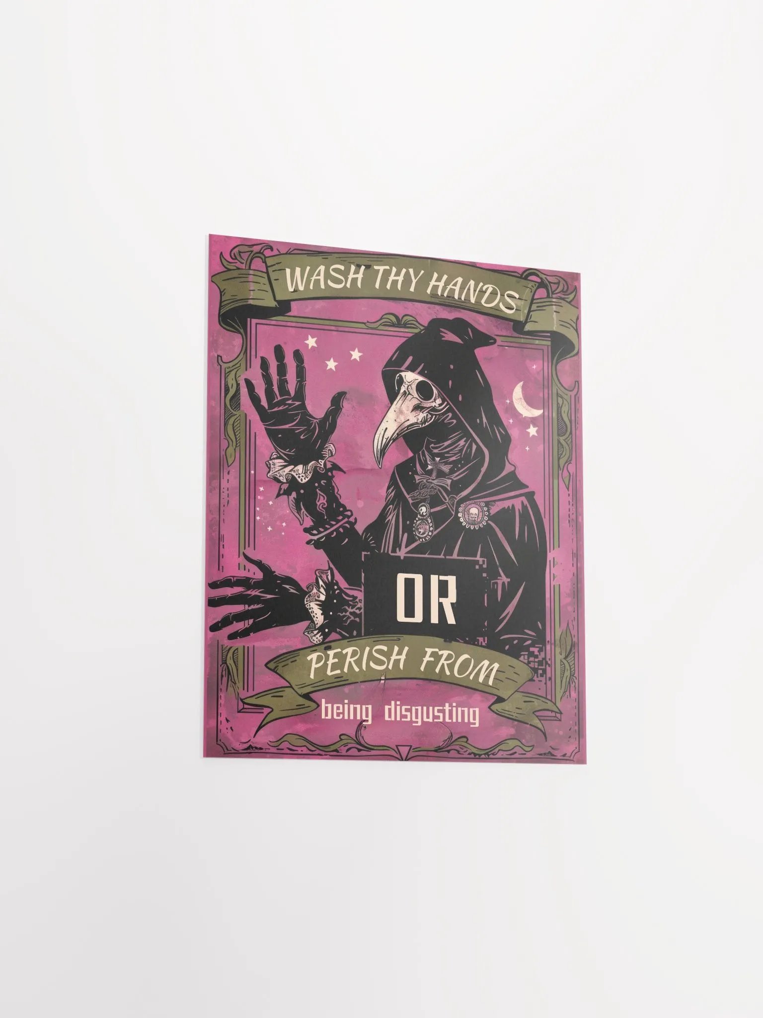"Wash Thy Hands Or Perish From Being Disgusting" Plague Doctor Funny Bathroom Wall Art Print